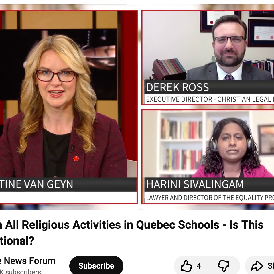 CLF (ACD) was granted leave to intervene in litigation challenging the province’s “prayer ban” directive. That directive (now codified in Bill 94), issued by the Québec Minister of Education, prohibits the use of any space in public schools for religious practices, including “overt prayers”. Read more below: